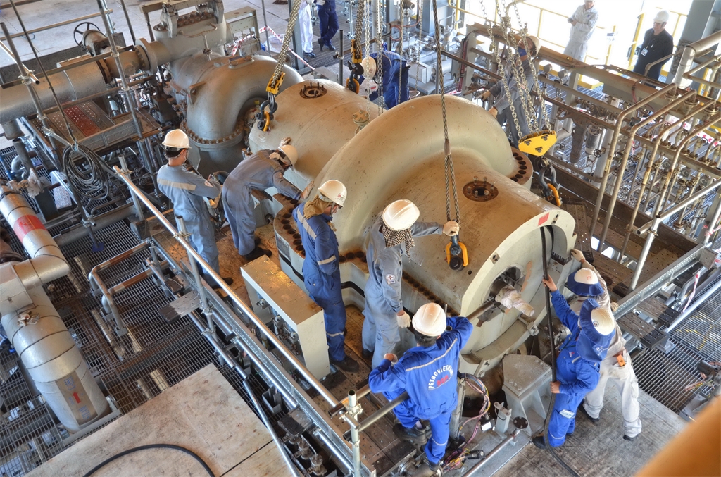 | Thực hiện công tác bảo dưỡng máy nén khí tại Phân xưởng RFCC. |