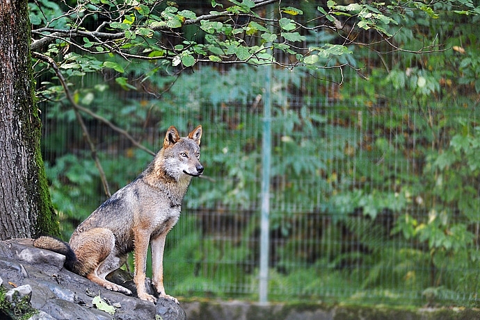 Ngay sát chuồng bên cạnh là chú sói đơn độc hết chạy tới chạy lui ven bờ rào hướng về đàn sói “hàng xóm”. Theo nữ hướng dẫn viên nổi bật với mái tóc ánh lên màu đồng dưới nắng thu, chú sói đơn độc kia và một chú sói trong đàn 3 con vốn là anh em, để tránh trường hợp sinh sản cận huyết, trung tâm đã tách chúng ra. Đây đều là những con sói Caucasian, có kích thước trung bình, màu lông xám tối. Sói đực nặng khoảng 30kg và tối đa gần 50kg, còn sói cái nặng chừng 25kg. Trong tự nhiên, thức ăn của sói Caucasian là các loài động vật như hươu, dê núi, cừu và những con mồi nhỏ hơn như thỏ rừng, động vật gặm nhấm. Vào mùa sinh sản, từ tiếng tru của những con sói trong khu bảo tồn mà lũ sói rừng sâu đáp lại và vây quanh khu lồng sắt. Trong đêm đen, những ánh mắt xanh lè của sói ẩn hiện.