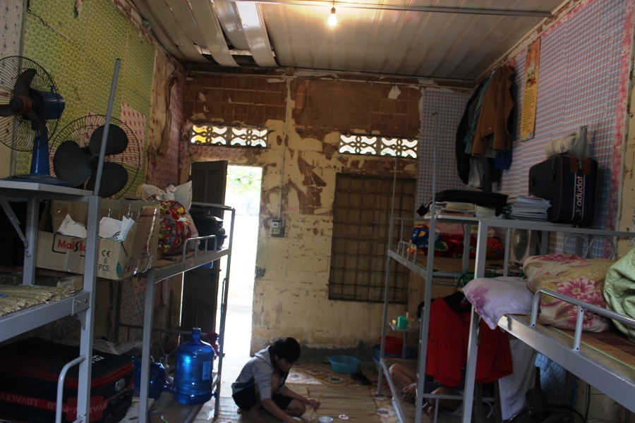 Điều kiện sinh hoạt thiếu thốn, mỗi phòng tại đây rộng khoảng chừng 13 mét vuông, đủ kê 4 chiếc giường tầng và chừa một lối đi hẹp.