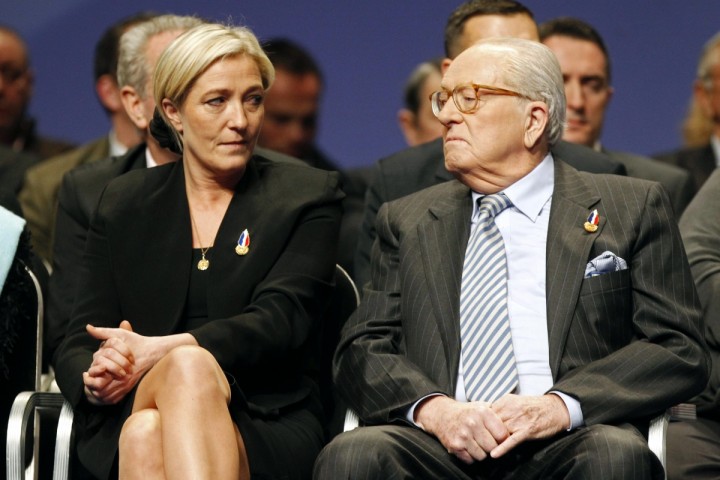 Marine Le Pen (trái), Chủ tịch Đảng Mặt trận quốc gia (Front national) ở Pháp và người cha Jean-Marie Le Pen