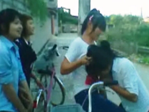Nhóm nữ sinh vừa đánh bạn vừa cười