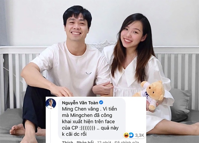 Tiền đạo Văn Toàn tếu táo: "Vâng. Vì tiền mà Ming Chen (nickname của Viên Minh - PV) đã công khai xuất hiện trên facebook của Công Phương. Quả này không cãi được rồi".