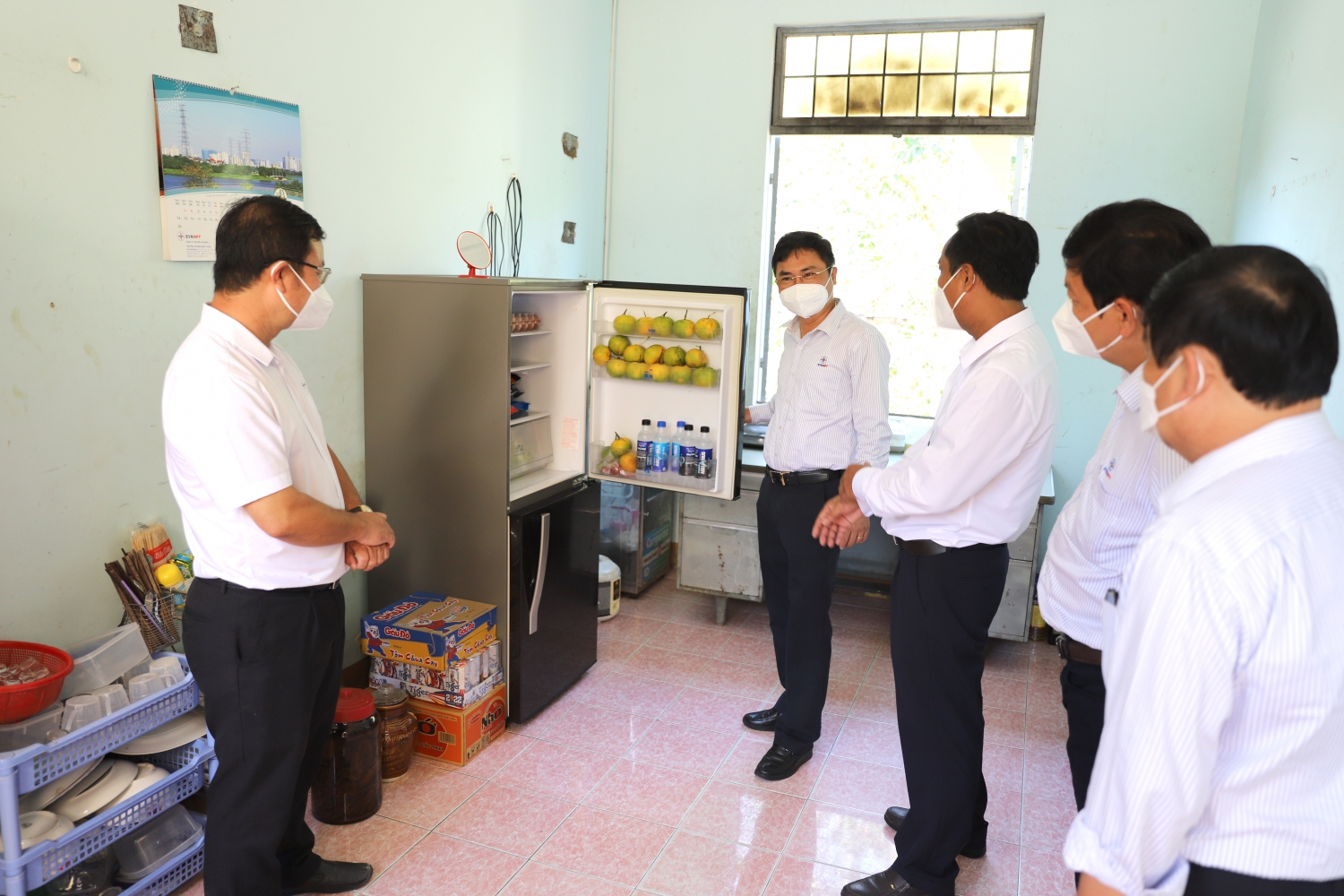| Giám đốc PTC3 kiểm tra nhu yếu phẩm chuẩn bị cho CBCNV trực vận hành tại Đội truyền tải điện Tánh Linh |