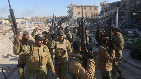 | Lực lượng an ninh Iraq ăn mừng chiến thắng sau khi giải phóng Ramadi. |