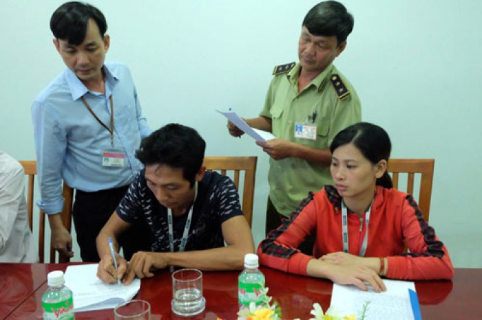 | Vợ chồng ông Nguyễn Công Ngọc ký biên bản vi phạm.(ảnh Cổng thông tin điện tử TP Đà Nẵng) |