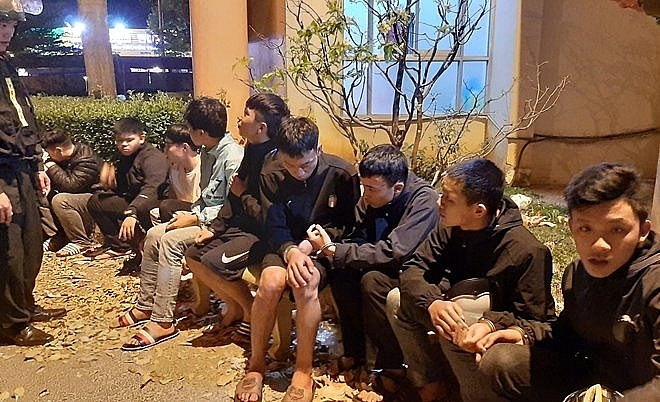| Các đối tượng bị bắt giữ tại hiện trường. |