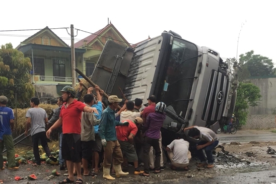 Theo thông tin ban đầu, vào khoảng 7 giờ 30 phút sáng 3/5, xe tải chở dưa hấu mang BKS 36C - 185.36 lưu thông ttrên quốc lộ 1A theo hướng Thanh Hóa - Hà Nội. Khi đi đến địa phận xã Ninh Hải (huyện Tĩnh Gia, tỉnh Thanh Hóa), do đường trơn, xe tải đã mất lái rồi lao vào dải phân cách sau đó lật nghiêng, chắn ngang một phần đường Quốc lộ 1A.