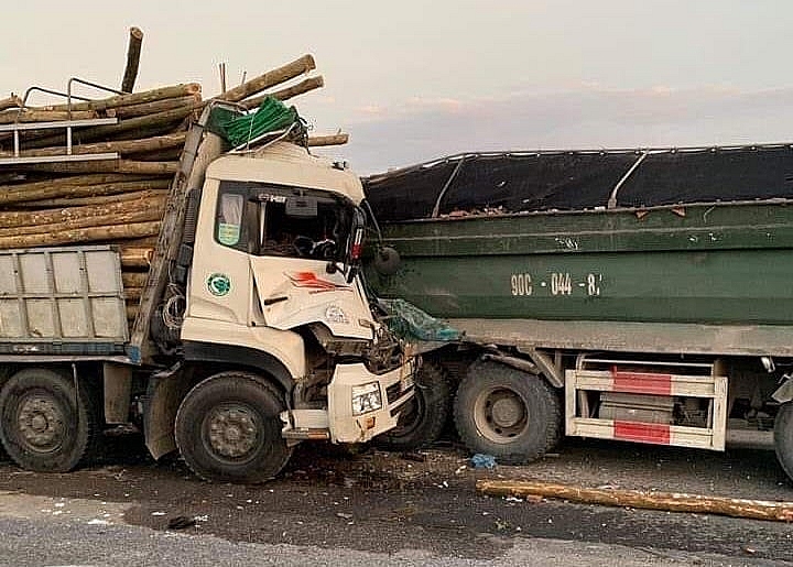 Hậu quả, hai người ngồi trong cabin xe tải chở gỗ tử vong tại chỗ.