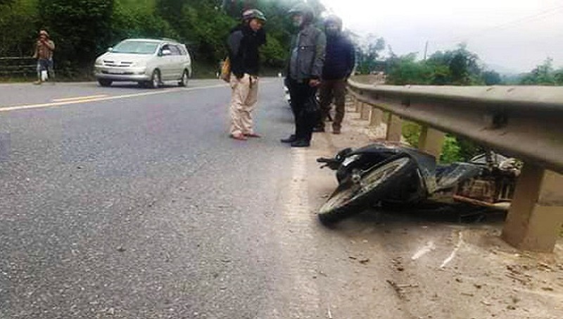 Khi đến địa điểm trên, xe máy của 2 em bất ngờ mất lái, đâm vào lan can chắn bên lề đường. Cú va chạm mạnh khiến cả 2 ngã văng xuống đường, bị thương nặng. Tại hiện trường, chiếc xe máy biến dạng, mắc vào lan can.