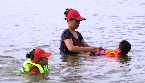 Dân Thủ đô biến đập nước thành “bãi tắm” lý tưởng