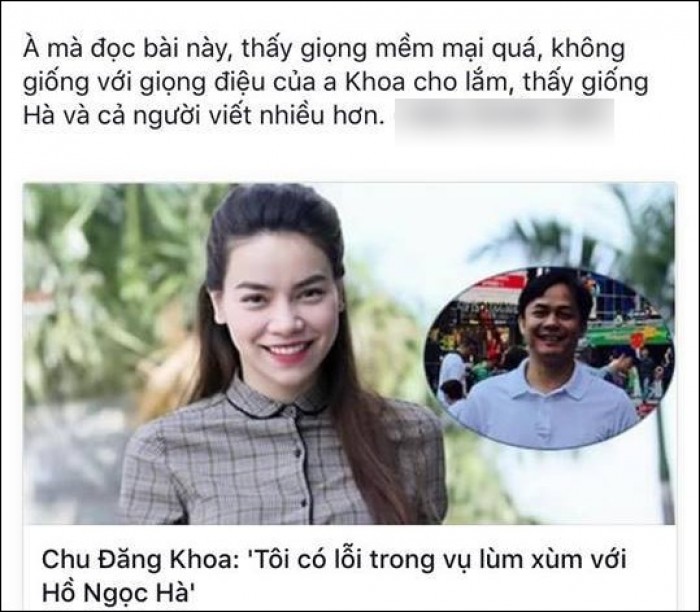 Chia sẻ của vợ Chu Đăng Khoa ngay lập tức nhận được hàng ngàn lượt like cùng nhiều bình luận bất bình về mối quan hệ giữa Hà Hồ và vị đại gia có một vợ, hai con.