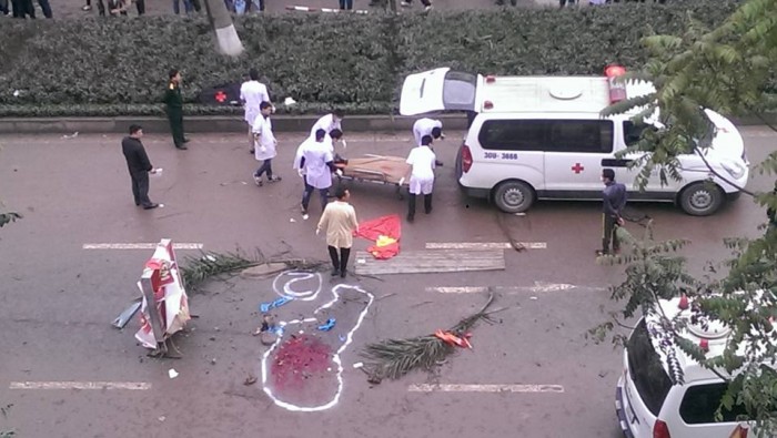 | Hiện trường nơi nạn nhân tử vong trong vụ nổ ở Hà Đông |