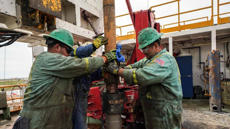 | Công nhân khai thác dầu khí tại bể dầu Permian, Texas, Mỹ. Ảnh: Benjamin Lowy/Getty Images |