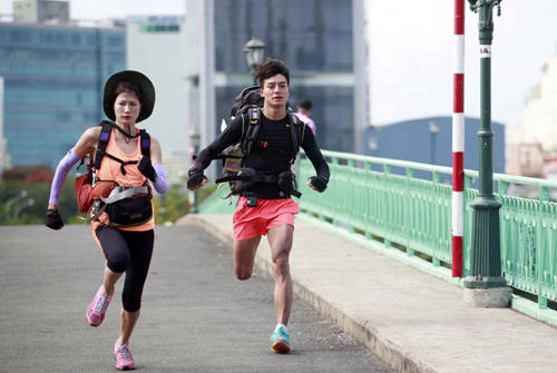 Trang Trần (trái) trong chương trình "Cuộc đua kỳ thú 2014"