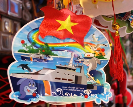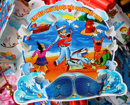 Lần đầu tiên xuất hiện mẫu đèn lồng mang thông điệp hướng về biển đảo quê hương.(ảnh đèn lồng “Em yêu đất nước Việt Nam" với hình chú hải quân).