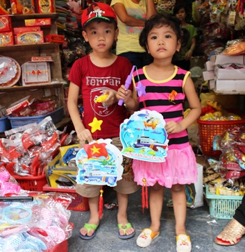 Theo ghi nhận của phóng viên, năm nay những sản phẩm đèn lồng có nhiều mẫu mã đẹp, các sản phẩm có tính giáo dục cao. Đặc biệt lần đầu tiên trên thị trường đã xuất hiện những chiếc lồng đèn gắn với hình biển đảo quê hương.