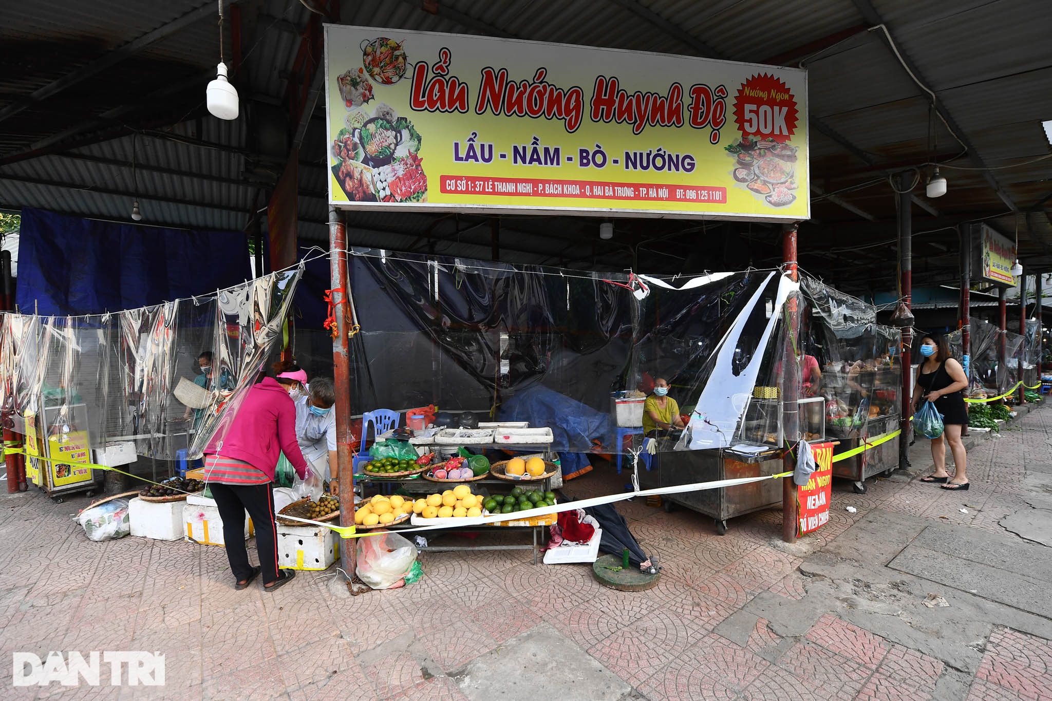 Một số quầy hàng nhỏ hơn thì sử dụng tấm chắn cỡ nhỏ, hoặc dựng khung chắn tự chế để dễ thu dọn. Toàn bộ chợ có khoảng 150 quầy bán hàng, với lịch luân phiên theo ngày chẵn - lẻ sẽ có khoảng hơn 70 quầy hoạt động mỗi ngày. Những quầy hàng không cấp thiết đã được thông báo tạm nghỉ kinh doanh.