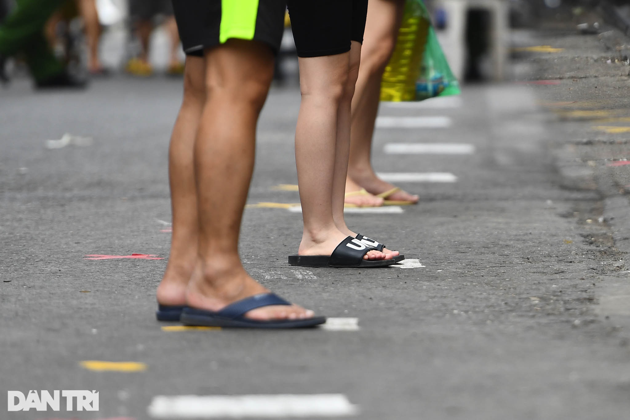 Người đi chợ sẽ phải xếp hàng đúng điểm sơn trắng đã kẻ ô vuông sẵn trên mặt đường trong chợ. Những người không tuân thủ ngay lập tức sẽ được nhân viên y tế và dân phòng nhắc nhở, thậm chí có thể bị tiểu thương có thể từ chối bán hàng.
