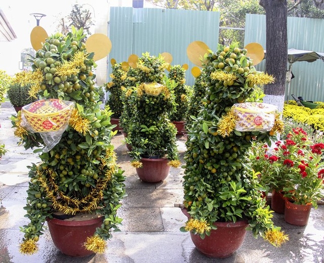 “Những gốc quất này được mua ở miền Nam, cây có tuổi đời khoảng 2 năm rồi các nghệ nhân phải uốn theo khung, rất công phu mới được hình dáng như hiện tại. Giá bán mỗi chậu 6-7 triệu đồng, tùy kích cỡ”, bà Lệ cho hay.