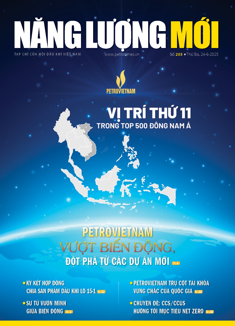 (PetroTimes) - Tạp chí Năng lượng Mới số 203 có những bài tiêu biểu: Petrovietnam vào Top 11 doanh nghiệp lớn nhất Đông Nam; Ký kết hợp đồng chia sẻ sản phẩm dầu khí Lô 15-1; Sư tử vươn mình giữa Biển Đông; Petrovietnam: Trụ cột tài khóa vững chắc của quốc gia; Chuyên đề: CCS/CCUS hướng tới mục tiêu Net Zero; Quản trị biến động từ góc nhìn bản thể luận; 50 năm Petrovietnam: Một hành trình của niềm tin và bản lĩnh