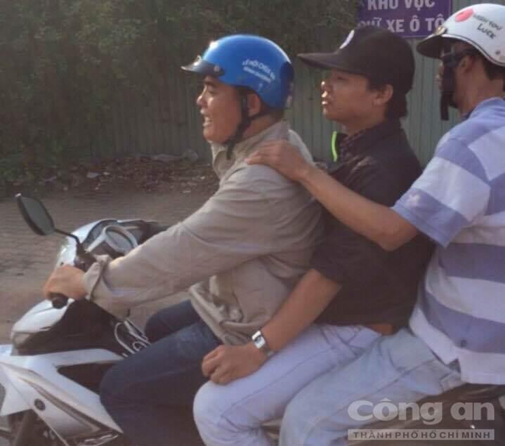 | Các hiệp sĩ trên đường "di lý" D. (áo đen) về trụ sở công an |