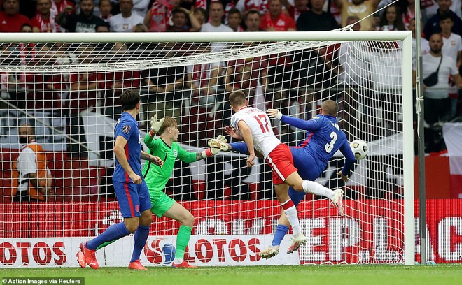 | Szymanski đánh đầu gỡ hòa 1-1 cho Ba Lan ở phút bù giờ. |