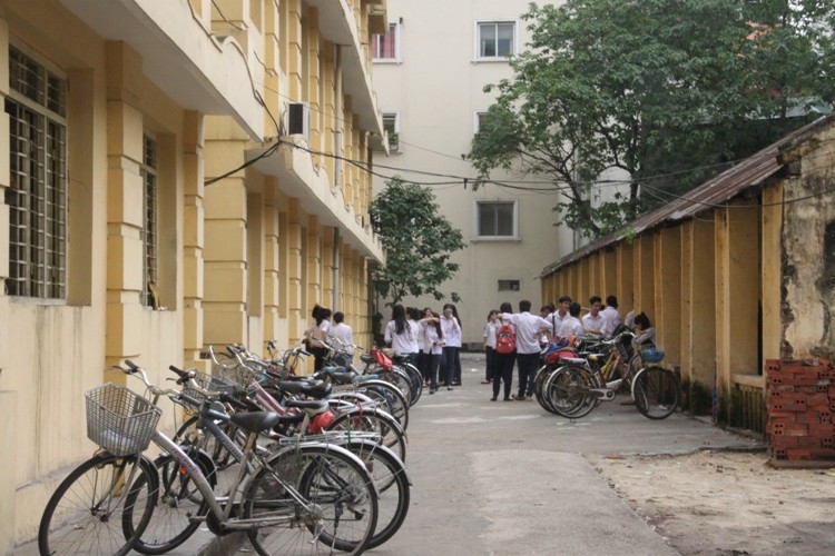 Thêm vào đó, những chiếc xe này được đỗ một cách tự phát, không quy hoạch cụ thể và không có rào chắn, phân biệt giữa khu vực đỗ xe và khu vực sinh hoạt của học sinh. Nhìn từ xa vào trường thì không khác gì nhìn vào... cái chợ nào đó trên địa bàn Hà Nội.