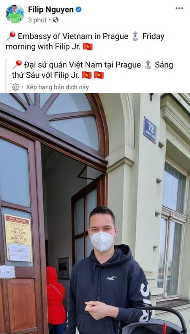Cách đây ít giờ, Filip Nguyễn đã đăng tải bức hình trên trang cá nhân. Trong đó, thủ thành này đã có mặt ở Đại sứ quán Việt Nam tại Praha (CH Czech). Trên tay của thủ thành sinh năm 1992 là tập giấy tờ.
