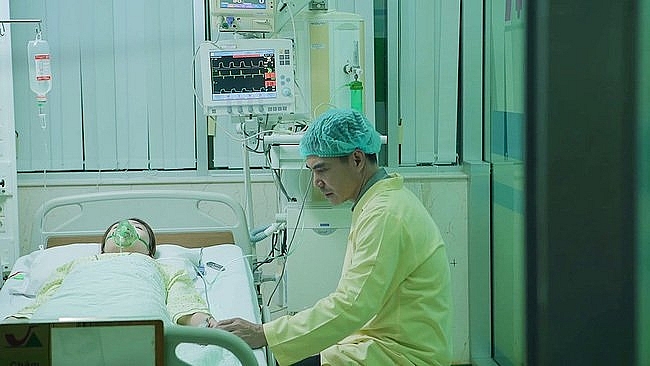 | Kiệt chăm sóc cho Hân trong bệnh viện |