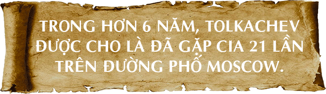 Theo RBTH, vào một buổi tối mùa đông giá lạnh hồi tháng 1/1977 tại thủ đô Moscow, Liên Xô, đã xảy ra một vụ va chạm bất ngờ tại một trạm xăng gần đại sứ quán (ĐSQ) Mỹ, giữa một người đàn ông bí ẩn khoảng 50 tuổi vào một người nước ngoài. Người nước ngoài này chính là trưởng phòng khu vực Moscow của CIA. Người kia là Tolkachev, chuyên gia hệ thống dẫn đường laser và công nghệ gây nhiễu radar của Viện nghiên cứu Fazotron (FSI).