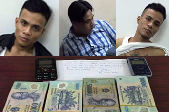19h cùng ngày, ông Vinh mang 200 triệu đồng đến điểm hẹn để giao cho các đối tượng. Vừa bước vào quán, 3 thanh niên cũng vừa đi vào, tiến đến gần vị trí ông Vinh ngồi rồi cầm lấy 200 triệu đồng trên tay và quay trở ra. Lập tức, các trinh sát ấp đến bắt quả tang và khống chế các đối tượng.