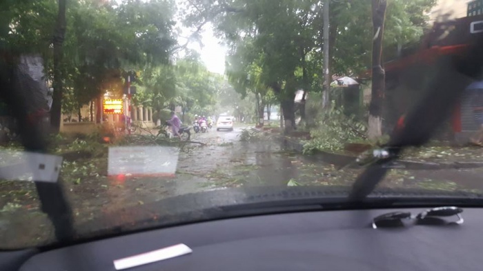 Do ảnh hưởng của bão số 1, Hà Nội có gió giật mạnh cấp 6-7 mưa rất to kéo dài cả đêm 27/7 tới rạng sáng 28/7 khiến nhiều cây xanh bị gãy đổ, bật gốc.