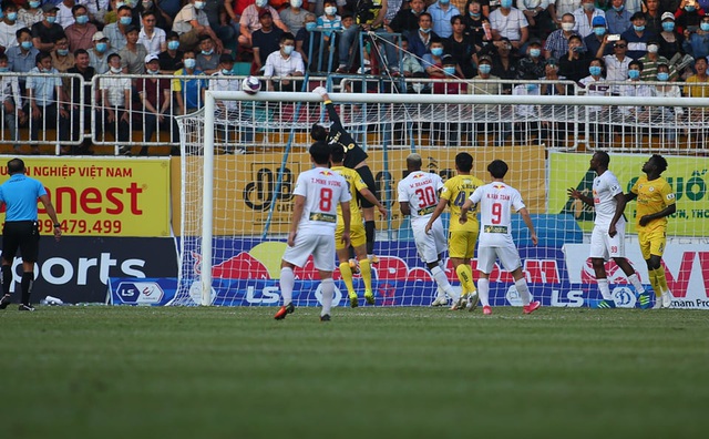 Phút 17: Hồng Duy đá phạt góc, anh thực hiện một cú treo bóng điểm rơi đầy ý đồ táo bạo. Bóng dội xà ngang bật ra.