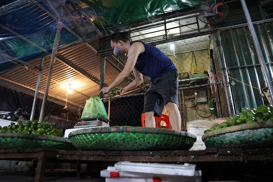 Chợ đầu mối phía nam trước có khoảng hơn 560 hộ kinh doanh thường xuyên, khoảng 150 đến 200 hộ kinh doanh không thường xuyên. Trong thời gian Hà Nội giãn cách xã hội, chợ chỉ còn khoảng hơn 380 hộ kinh doanh hàng thiết yếu.