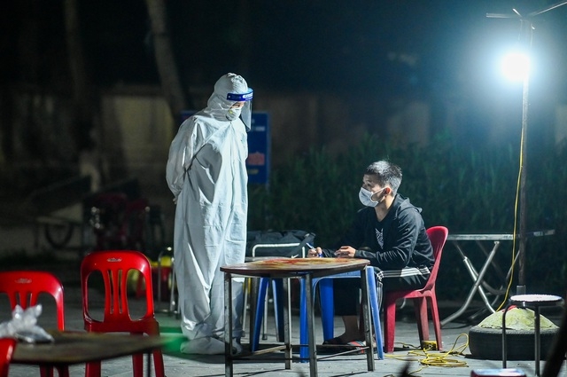 1h sáng ngày 30/4, tại khu tập thể ga Cổ Loa (thuộc thôn Trung, xã Việt Hùng, huyện Đông Anh, Hà Nội), lực lượng y tế huyện tiếp tục làm việc với những trường hợp F1 của ca dương tính SARS-CoV-2 mới được ghi nhận tối 29/4 trên địa bàn.