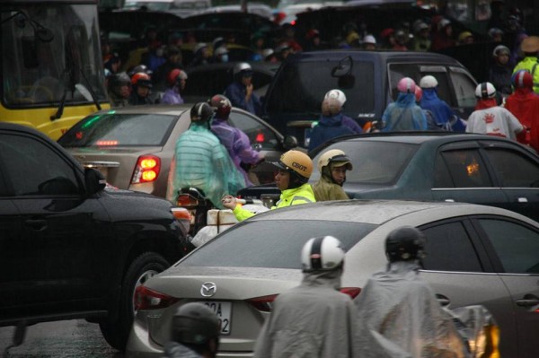| Lực lượng cảnh sát vất vả điều tiết giao thông |