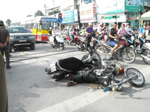 Ghi nhận của Petrotimes tại hiện trường, chiếc xe SH mang BKS: 29T6 – 6825 và xe Future mang BKS 29Y3 – 9882 nằm gác lên vỉa hè, giữa đường là ba chiếc xe máy khác đang bị dồn vào nhau. Cả năm chiếc xe máy đều bị hư hỏng nặng.