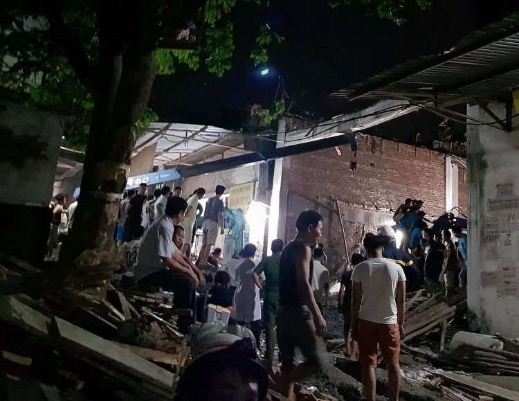 Tiếp nhận thông tin, Phòng Cảnh sát Phòng cháy và chữa cháy số 14, Công an TP Hà Nội đã có mặt tại hiện trường. Do nhà mới đổ mái lúc chiều nên khi đổ sập, bê tông tươi vùi xuống nạn nhân. Lực lượng cứu hộ cứu nạn phải rất vất vả mới tiếp cận được các nạn nhân để đưa ra ngoài.