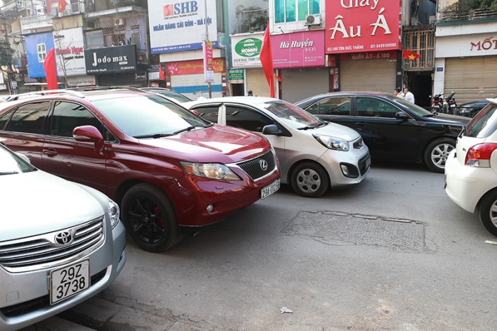 Tình trạng ùn ứ ở đường Khâm Thiên còn do nhiều ô tô đã sử dụng lòng đường làm nơi đỗ xe