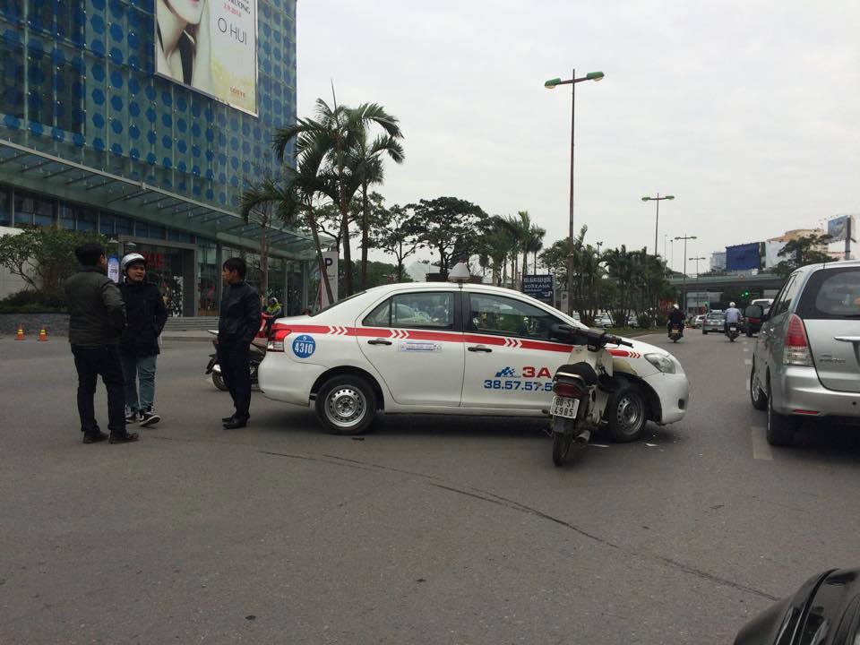 Hà Nội: Xe máy "dính chặt" vào taxi sau va chạm