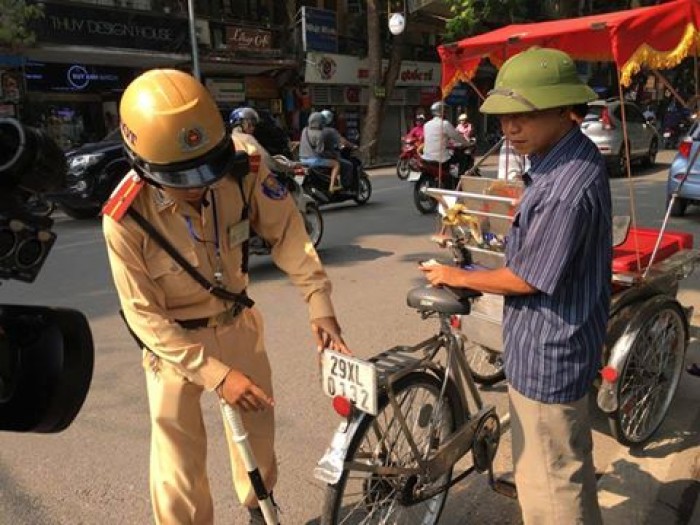 Sáng 22/10, thực hiện chỉ đạo của Phòng Cảnh sát giao thông Công an Hà Nội, Đội Cảnh sát giao thông số 1 ra quân xử lý các trường hợp xe xích lô vi phạm tại các tuyến phố cổ.