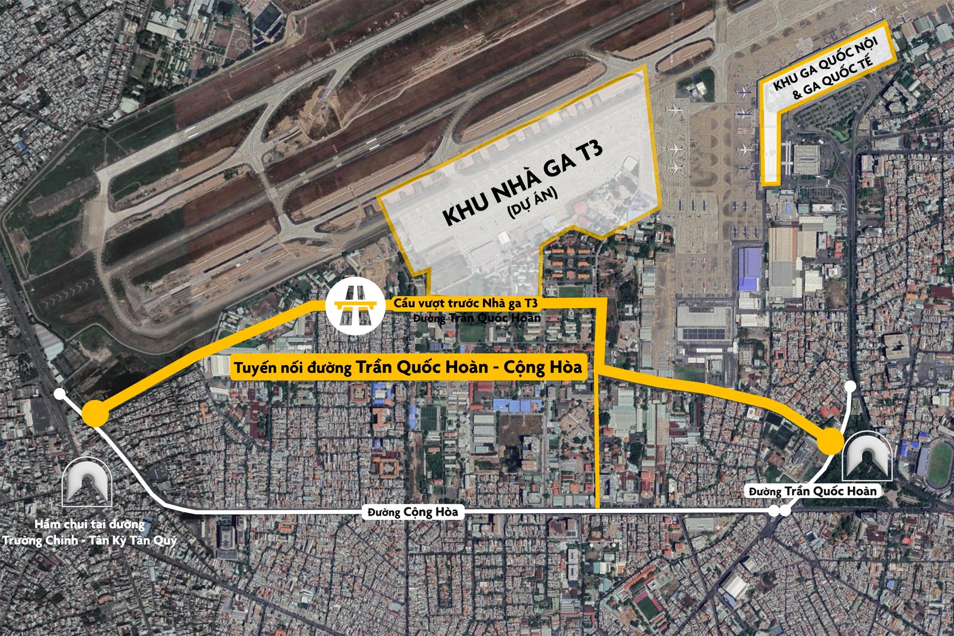 Dự án đường nối Trần Quốc Hoàn - Cộng Hòa dự kiến hoàn thành vào tháng 9/2024 để kết nối giao thông quanh khu vực nhà ga hành khách T3 sân bay Tân Sơn Nhất (dự kiến đưa vào hoạt động từ tháng 12/2024).