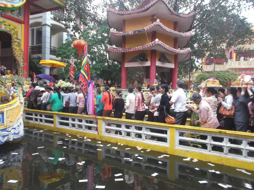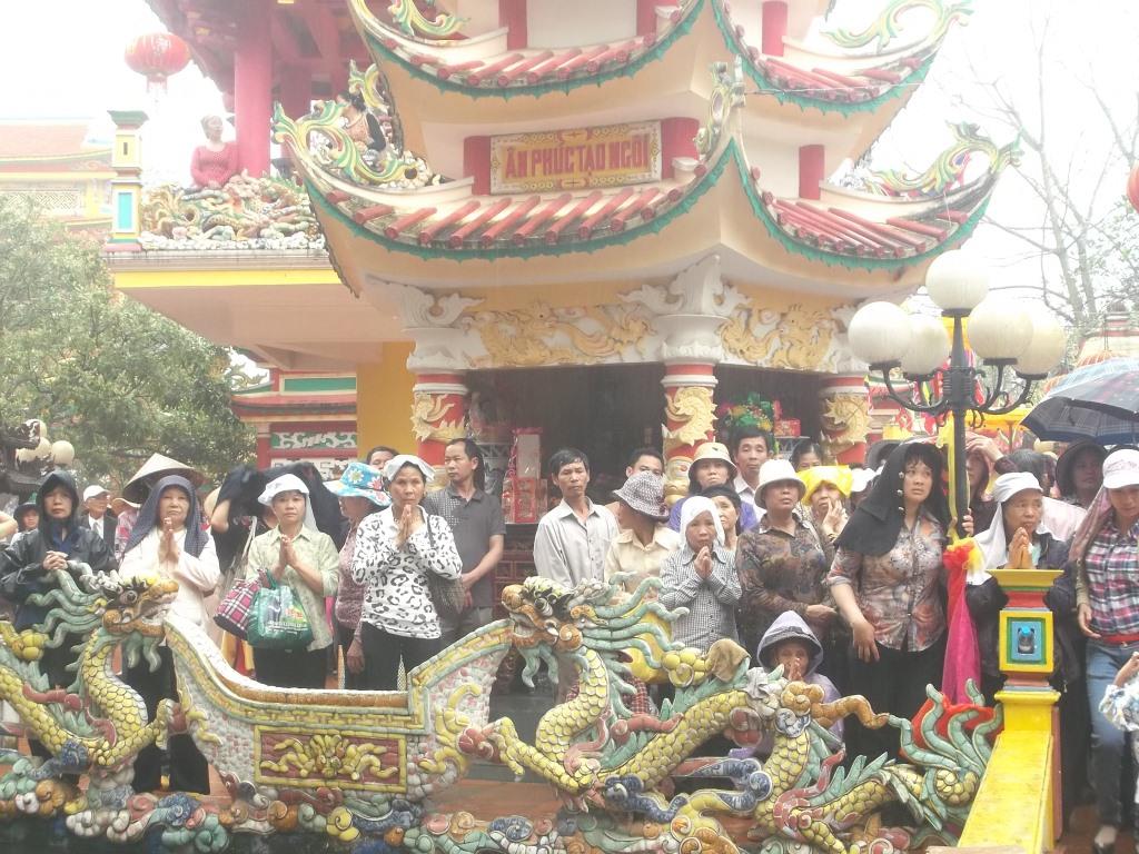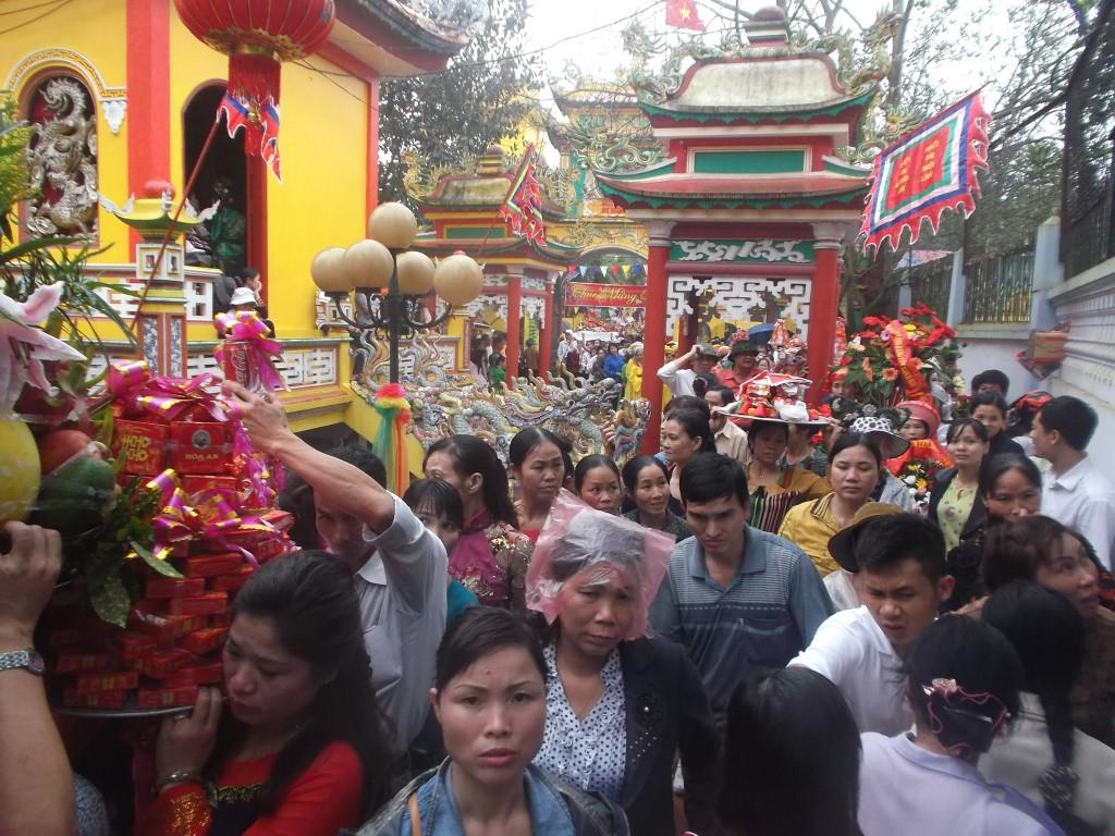 Ngày hiếu lễ năm nay, khách đổ về nườm nượp nên cỗ mà bà The đem ra thết khách vẫn lên tới cả nghìn mâm. Ngay từ sáng sớm hàng trăm đoàn con nhang đệ tử đã kịp về lễ mẫu. Những thiện nam, tín nữ phải xếp hàng đôi để đội lễ vật vào dâng mẫu. Và mặc dù trời mưa, nhưng việc phải chen lấn xô đẩy và đội lễ trong khuôn viên rộng đến cả chục hecta thì ai cũng phải... toát mồ hôi.