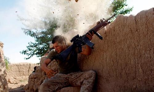 | Lính Mỹ giao chiến với Taliban tại tỉnh Helmand, Afghanistan năm 2008. Ảnh: Reuters. |