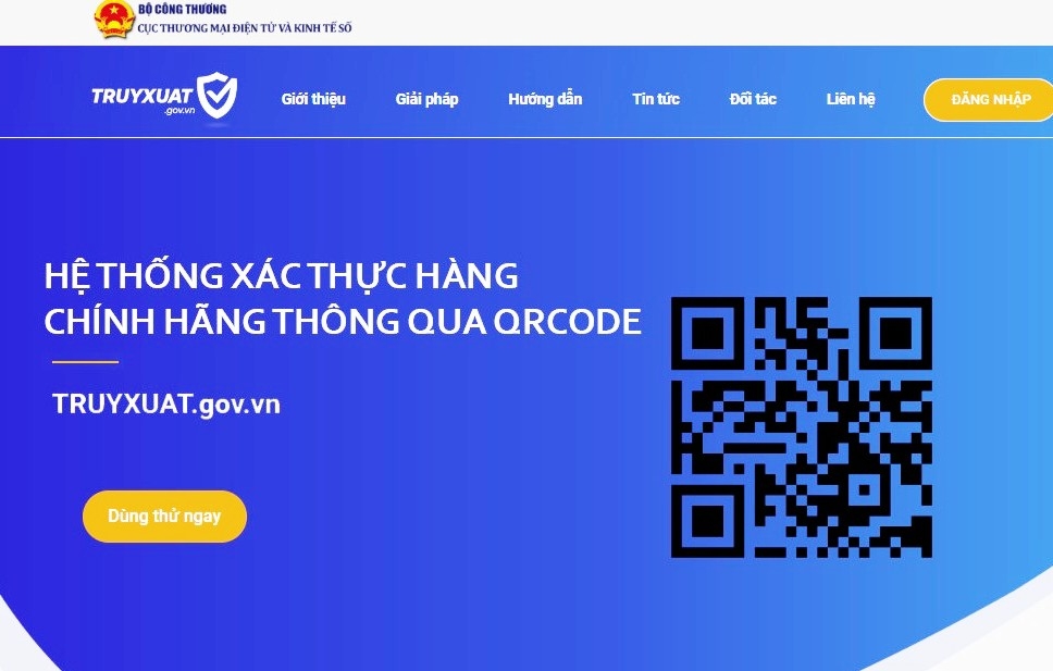 Mới đây, Bộ Công Thương (Cục Thương mại điện tử và Kinh tế số) đã xây dựng và đi vào vận hành hệ thống xác thực hàng chính hãng thông qua QRCode trong thương mại điện tử tại địa chỉ https://truyxuat.gov.vn/