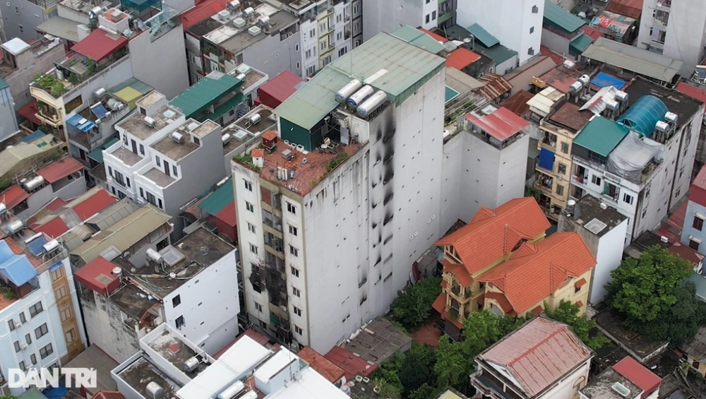 | Căn chung cư mini bị cháy tại Khương Hạ (Ảnh Ngọc Tân). |