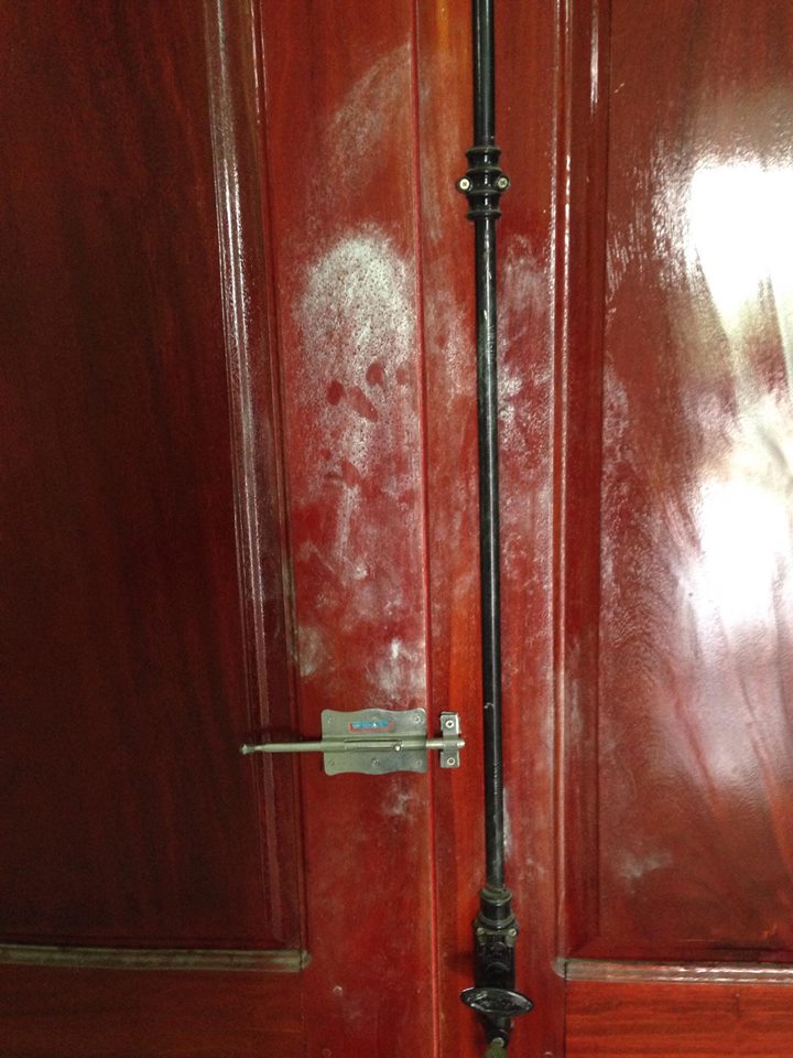 | Dấu vân tay ở các cửa ra vào được lực lượng công an thu tiến hành làm rõ bằng hoá chất |