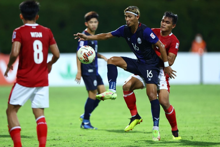 | Campuchia (trang phục xanh tím than) sẽ là đối thủ cuối cùng ở vòng bảng của Việt Nam. |