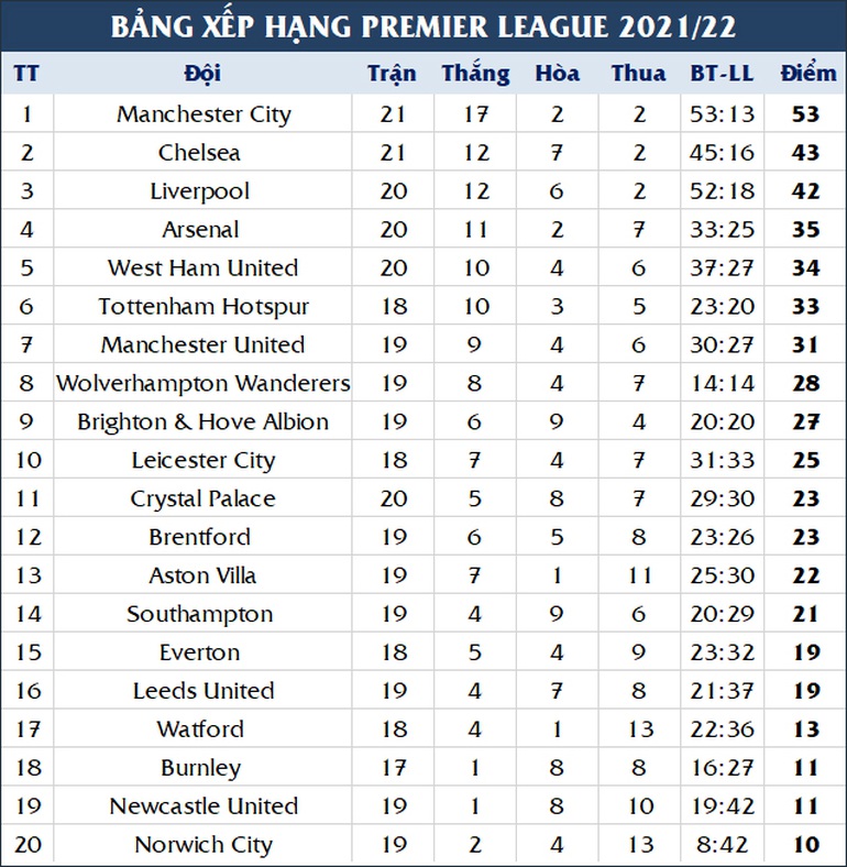 Man Utd kết thúc năm 2021 với chiến thắng rất cần thiết trên sân nhà trước Burnley. Tuy nhiên, năm mới Man Utd lại khởi đầu tệ hại khi màn trình diễn cẩu thả, rời rạc của "Quỷ đỏ" đã bị trừng phạt bởi đoàn quân đầy sức mạnh của HLV Bruno Lage.