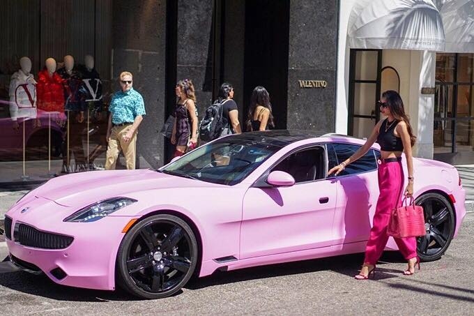 | Mới đây, Hoa hậu Phạm Hương chia sẻ trên mạng xã hội hình ảnh đầy sang chảnh khi cô xuất hiện trên chiếc siêu xe thể thao Fisker Karma màu hồng. |